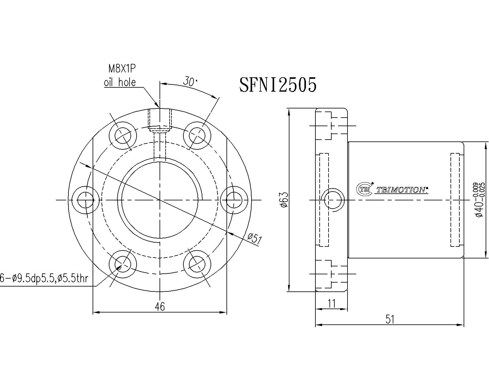 SFNI02505-4滚珠丝杆螺母TBI品牌南京哈宁现货供应