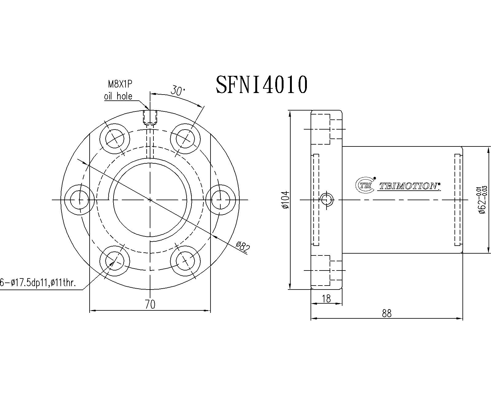 SFNI04010-4滚珠丝杆螺母TBI品牌南京哈宁现货供应