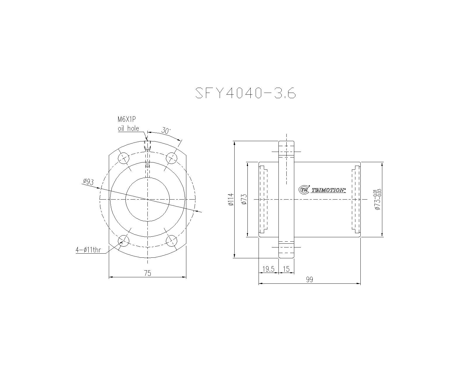 SFY04040-3.6滚珠丝杆螺母TBI品牌南京哈宁现货供应
